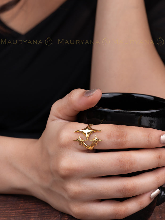 MAURYANA - Stainless Steel 18k Gold Plated Modern Design Open Ring
