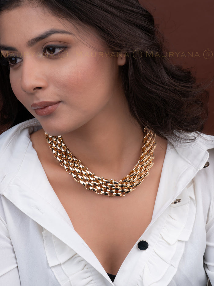 MAURYANA - Elegant and Fashionable Gold Plated Zinc Alloy Necklace - Adjustable length