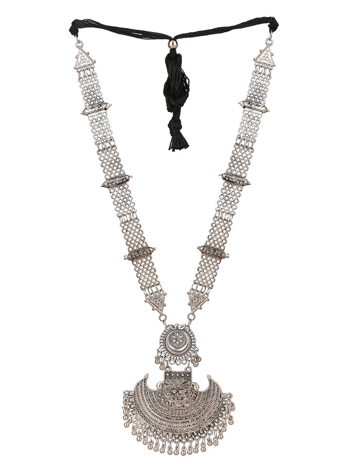 MAURYANA - Oxidised silver half moon pendant necklace set with earrings - adjustable length