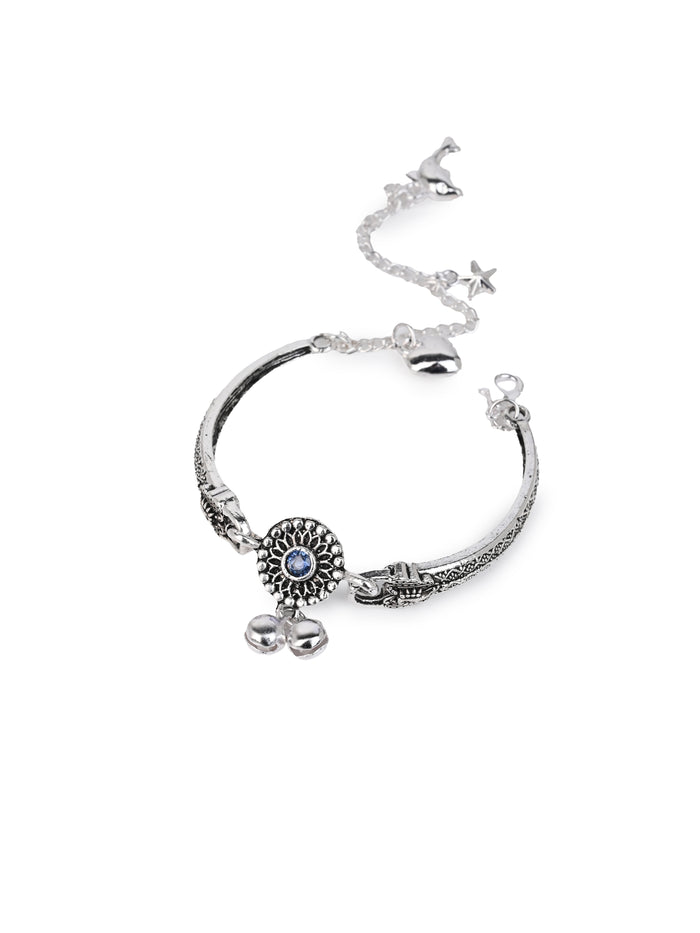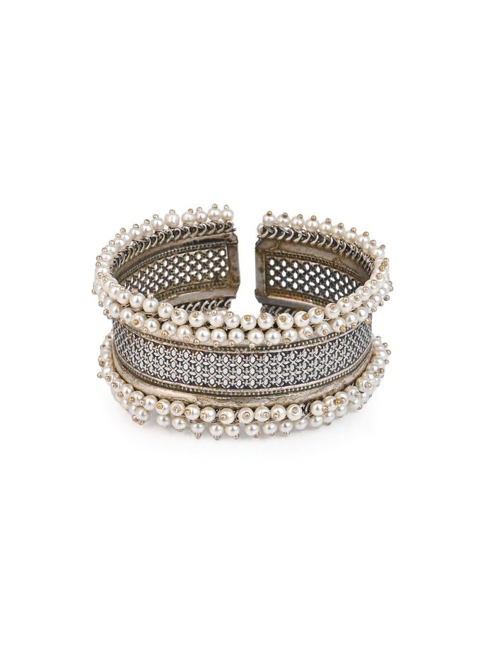 MAURYANA - Oxidised silver open end bangle with white bead decoration