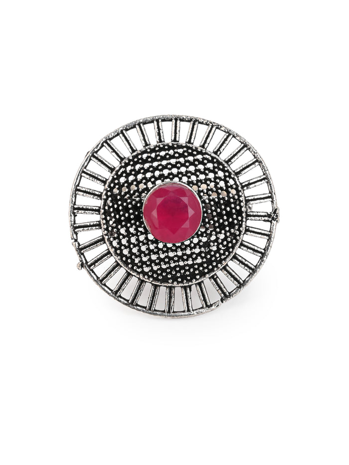 MAURYANA - Oxidised silver red stone embellished finger ring - size adjustable - assorted colors