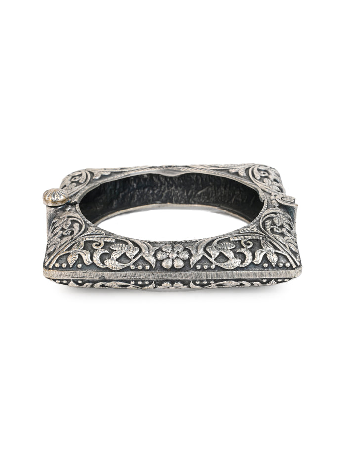 MAURYANA - Oxidised silver square bangle with opening mechanism