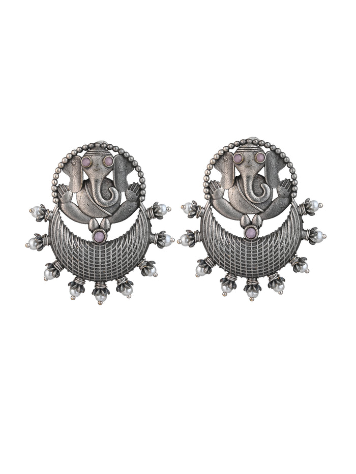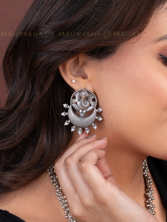MAURYANA - Oxidised silver lord ganesha design pair of earrings