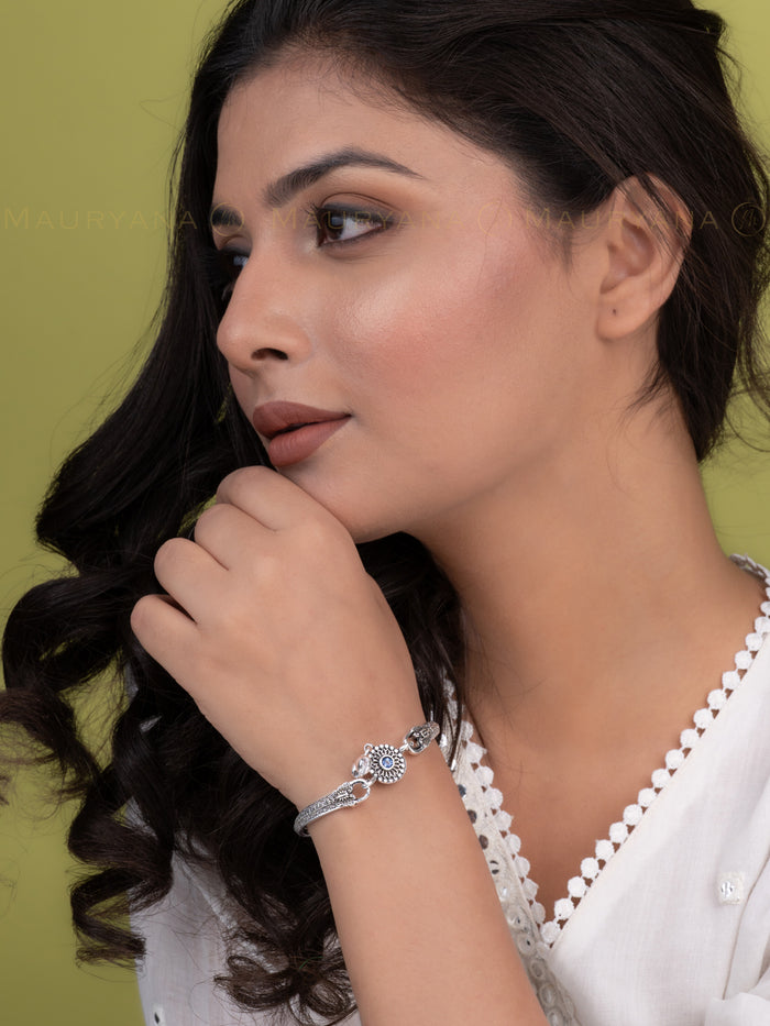 MAURYANA - Oxidised silver open end bracelet - adjustable size