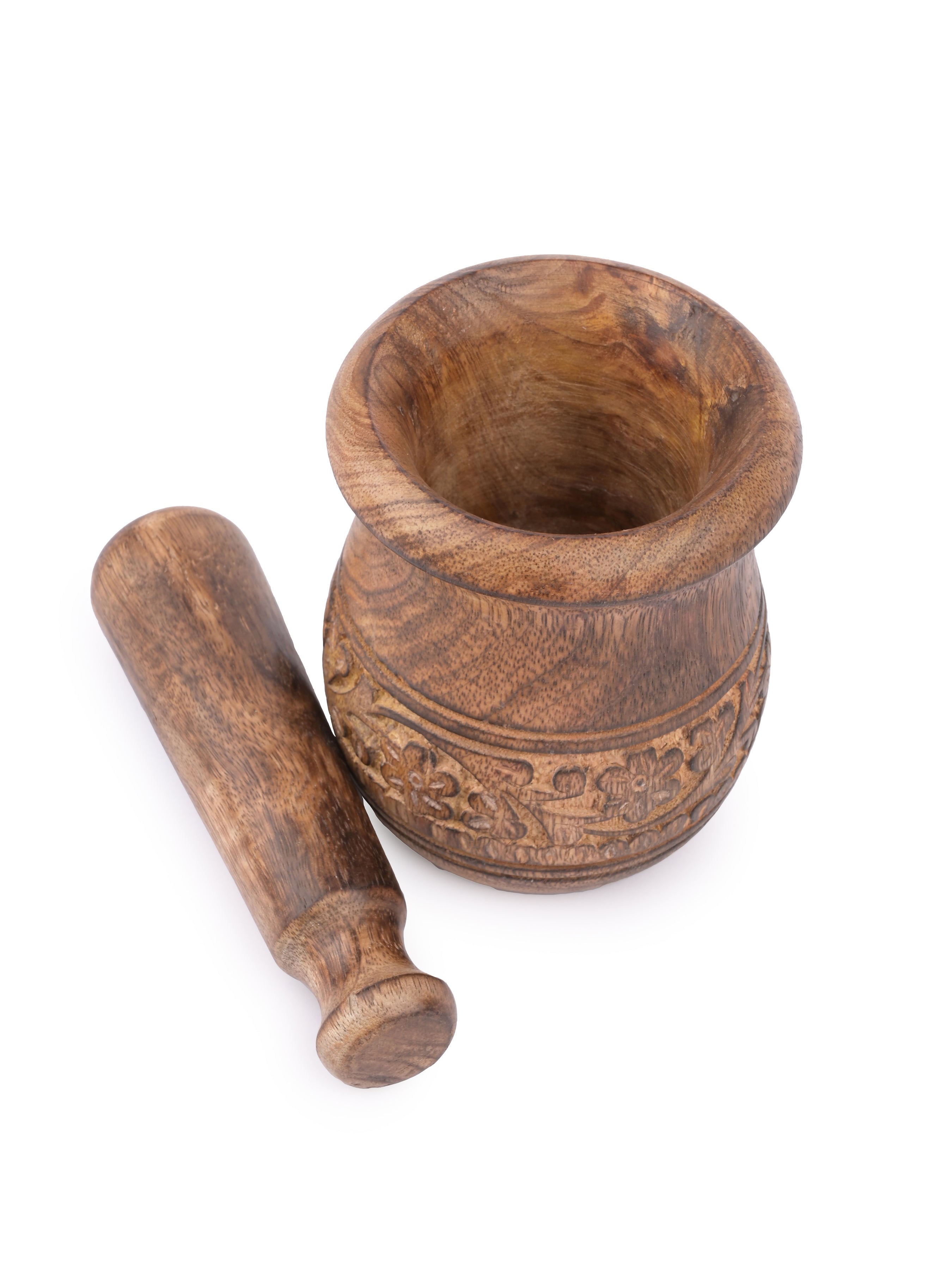 This set is made of Mango wood which is known for its durability, antique looks & strength. The pestle grinder comes with an ergonomic design which is comfortable to hold and the smooth finish won't hurt your hands after a long time use.