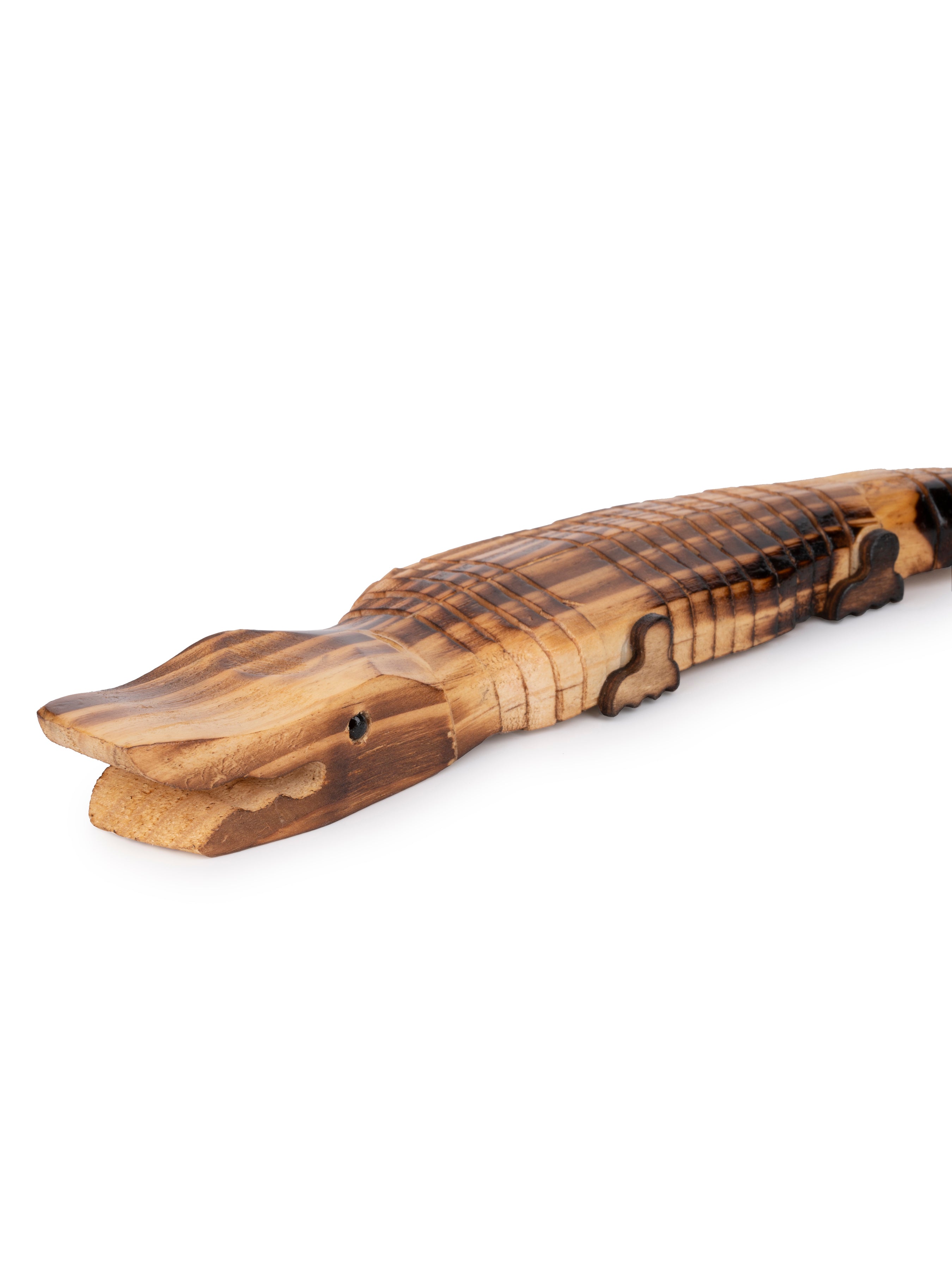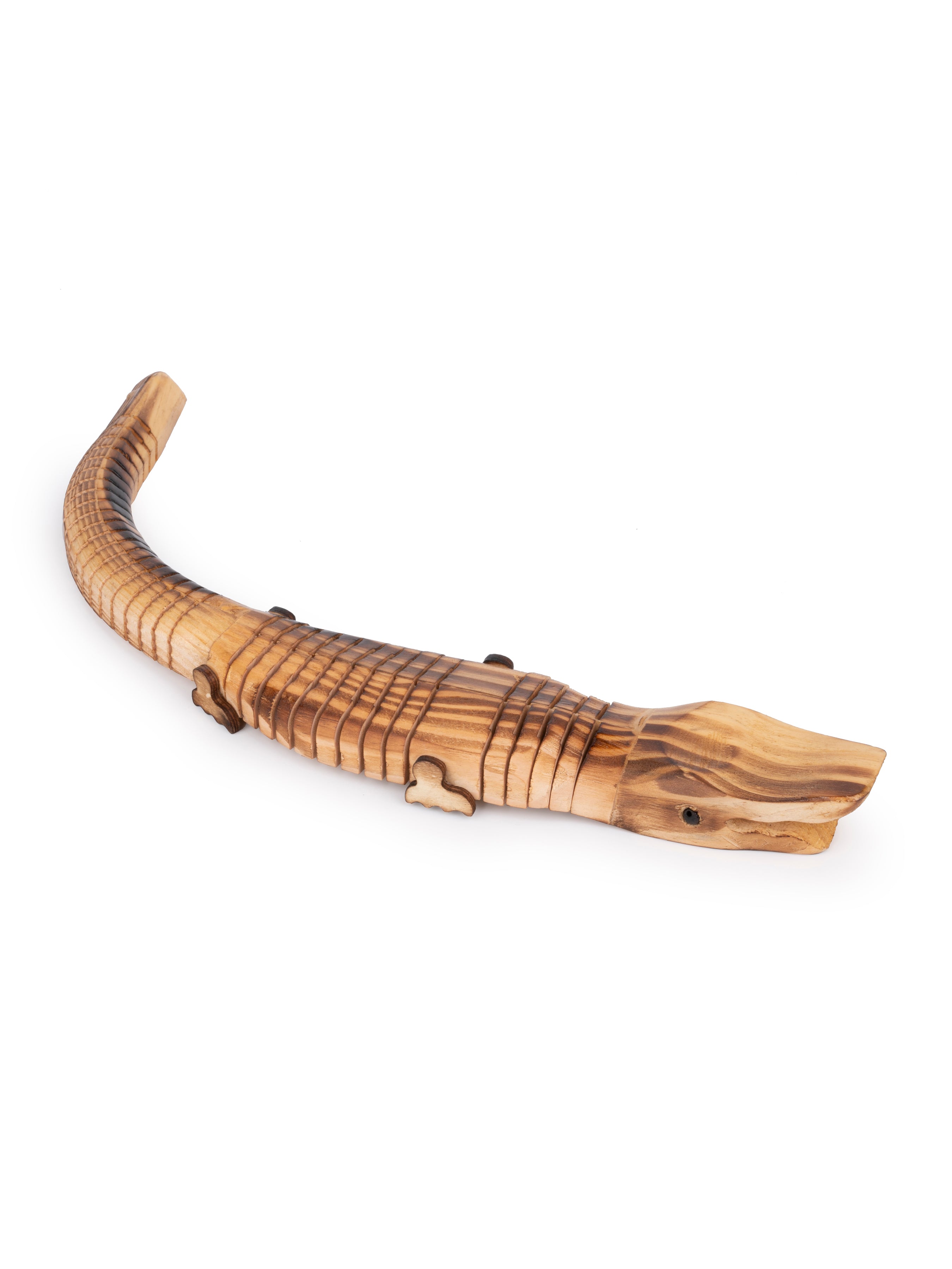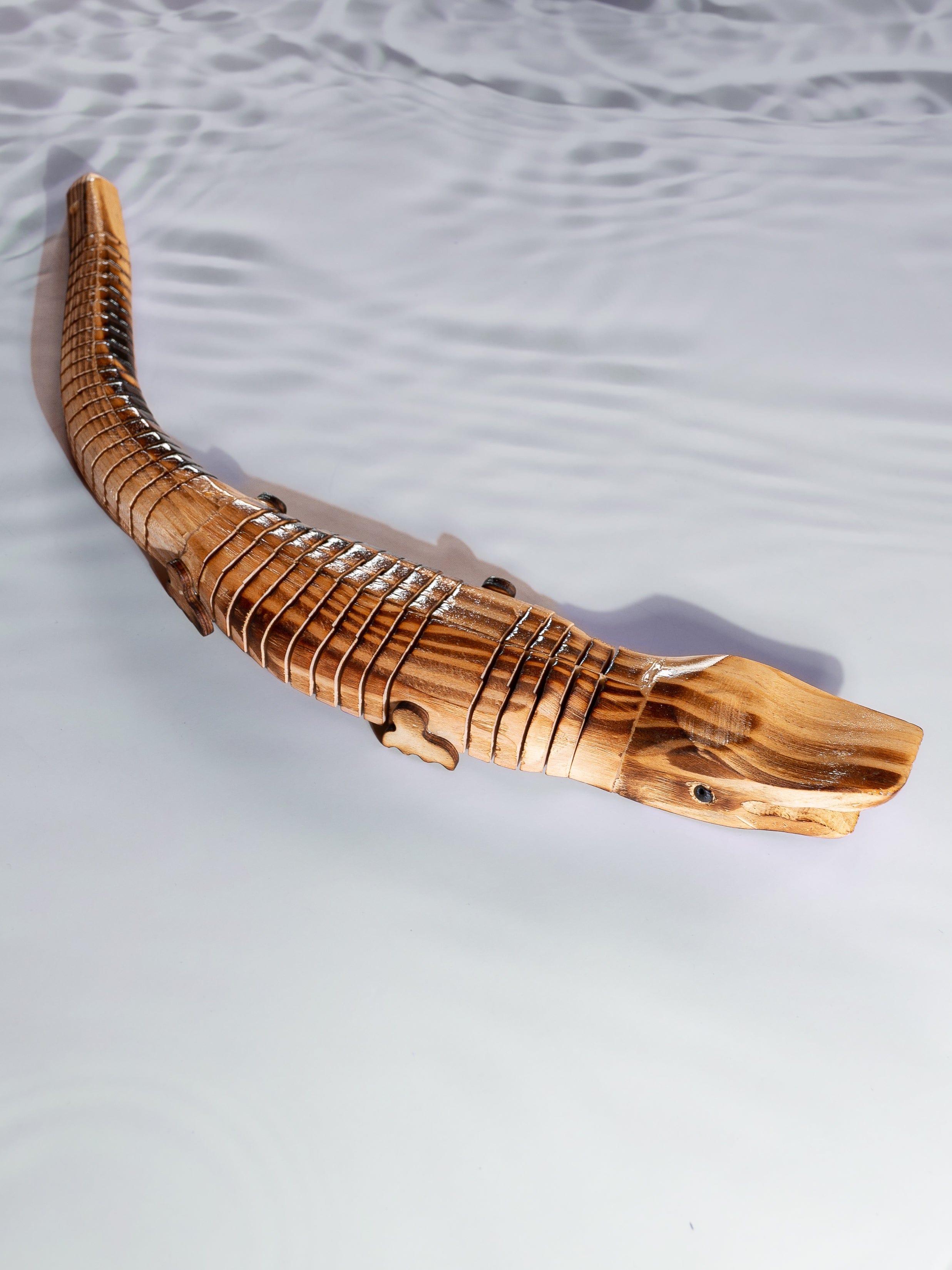 A flexible, lifelike and intriguing wooden crocodile. This masterpiece of creativity of our Bengal craftsman will leave no adult or child unmoved. It is made in such a way that when your child plays with it, it moves like a real crocodile.