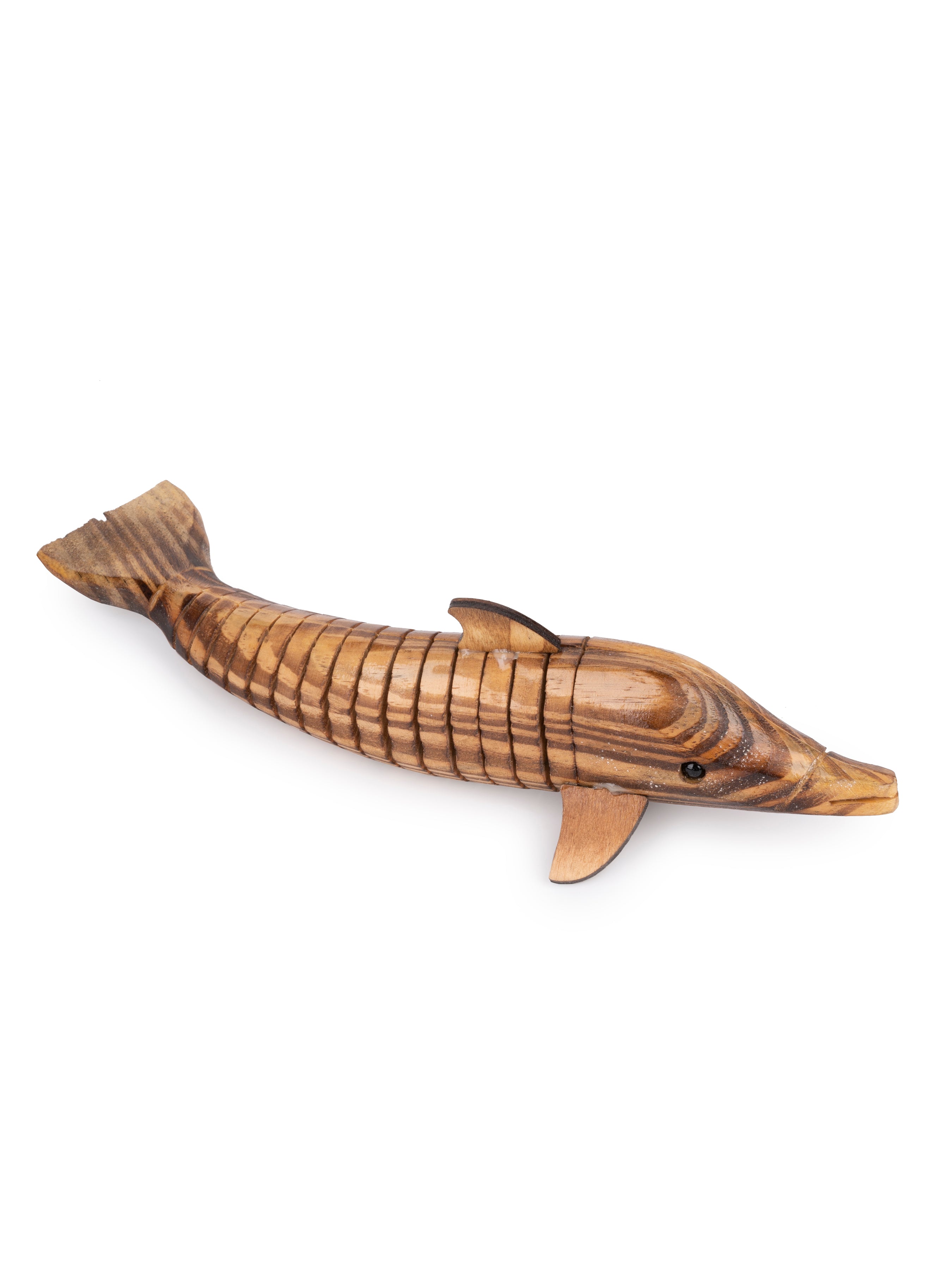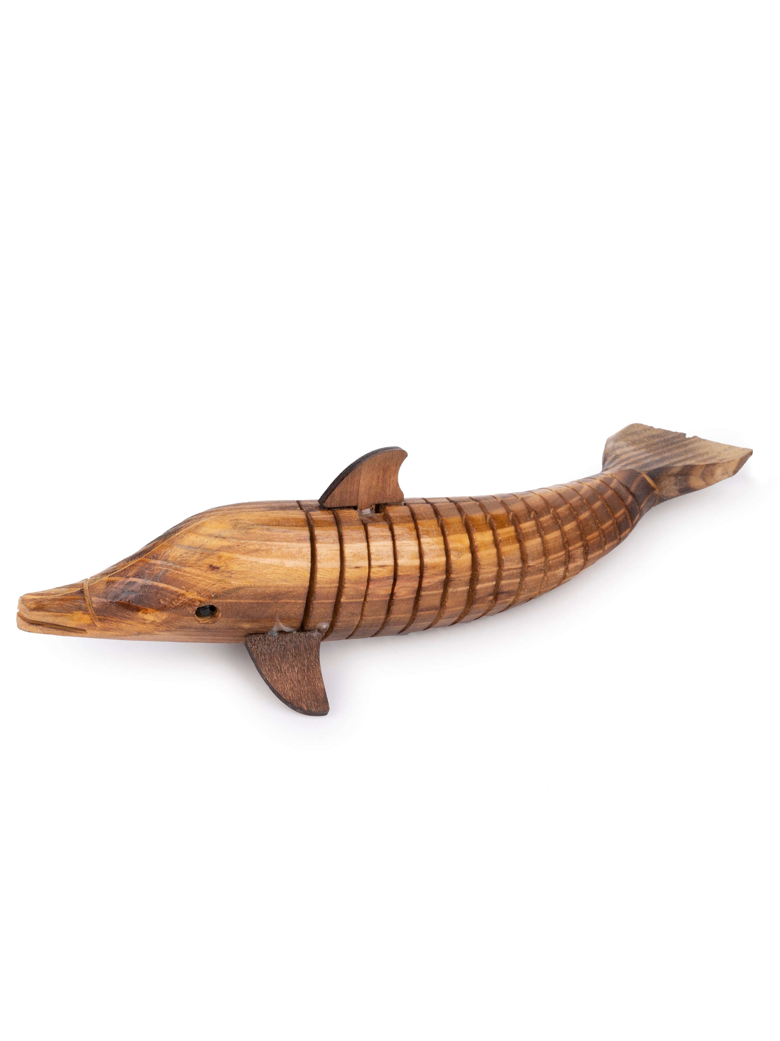 Our natural mango wood dolphin is a grasping decor cum toy that is perfect for any age group. This artifact also represents the beauty of sea creatures in a dramatic and precise manner. Handcrafted by artisans of Bengal with love and care, it is something unique to possess or gift.
