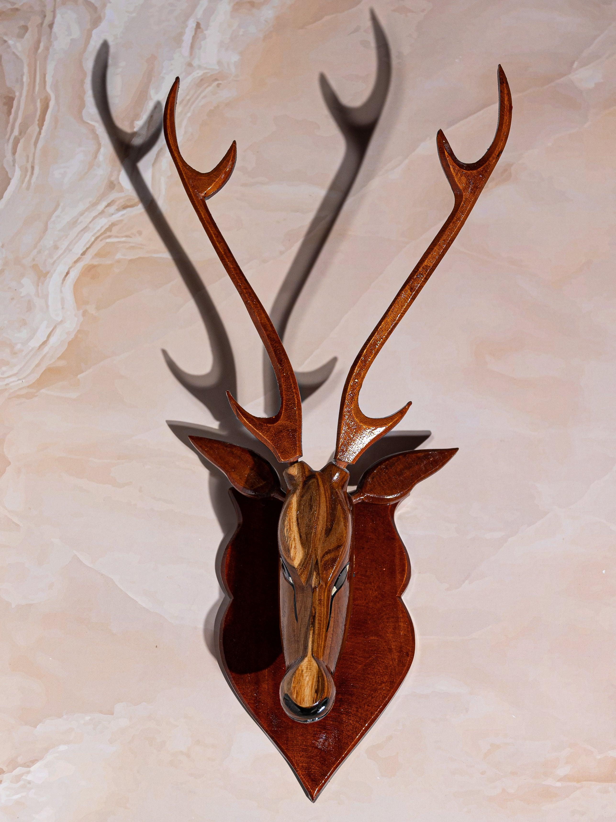 This hanging deer head is as enchanting as a fairy-tale. Inspired by niche artisan's enigmatic and vibrant style, our Bengal-inspired wooden art is what your house needs for a refreshing new look. These artifacts blend the aesthetics of wood carving with the dynamic style of Bengal, which gives you a truly unique art piece.