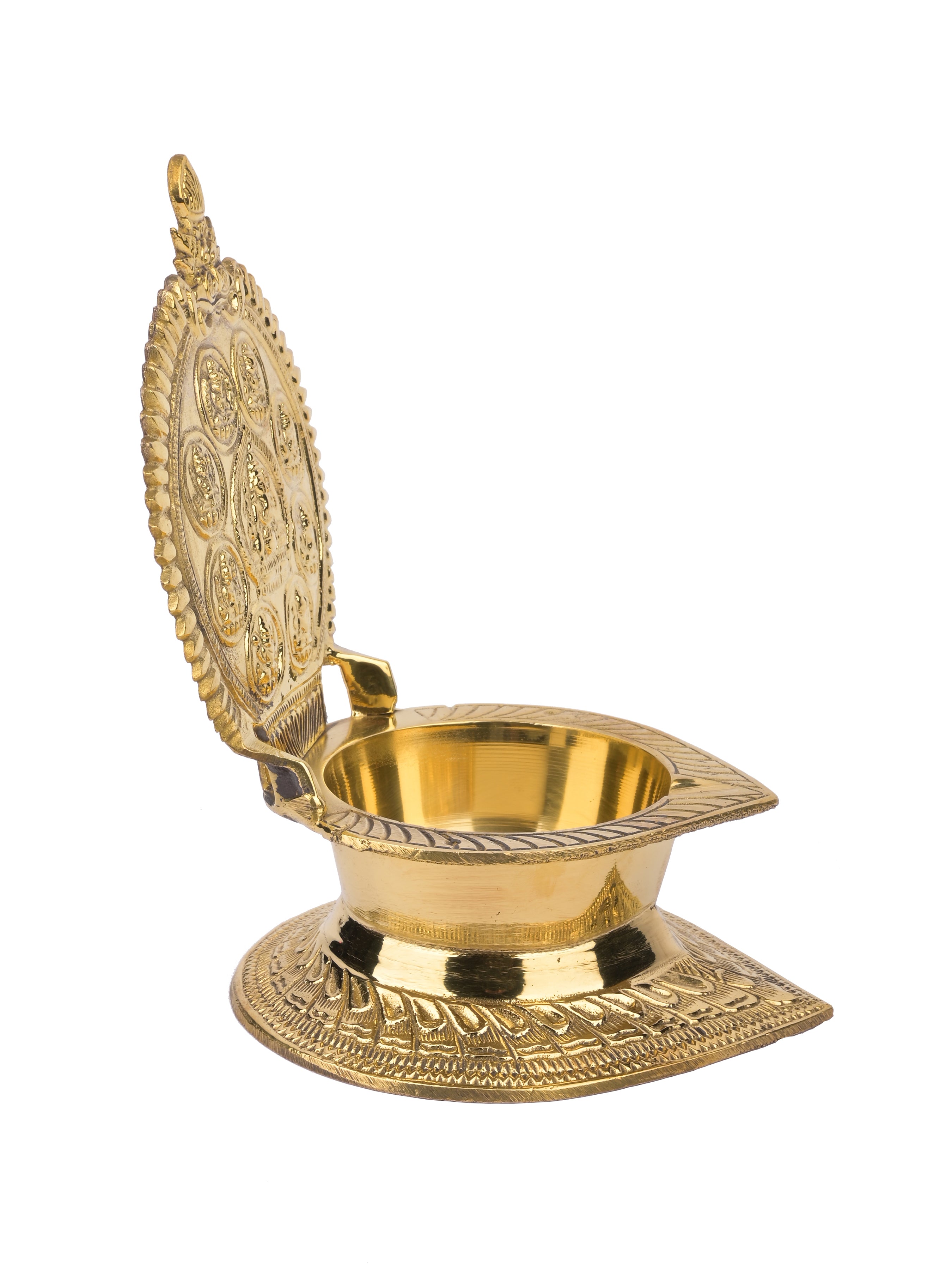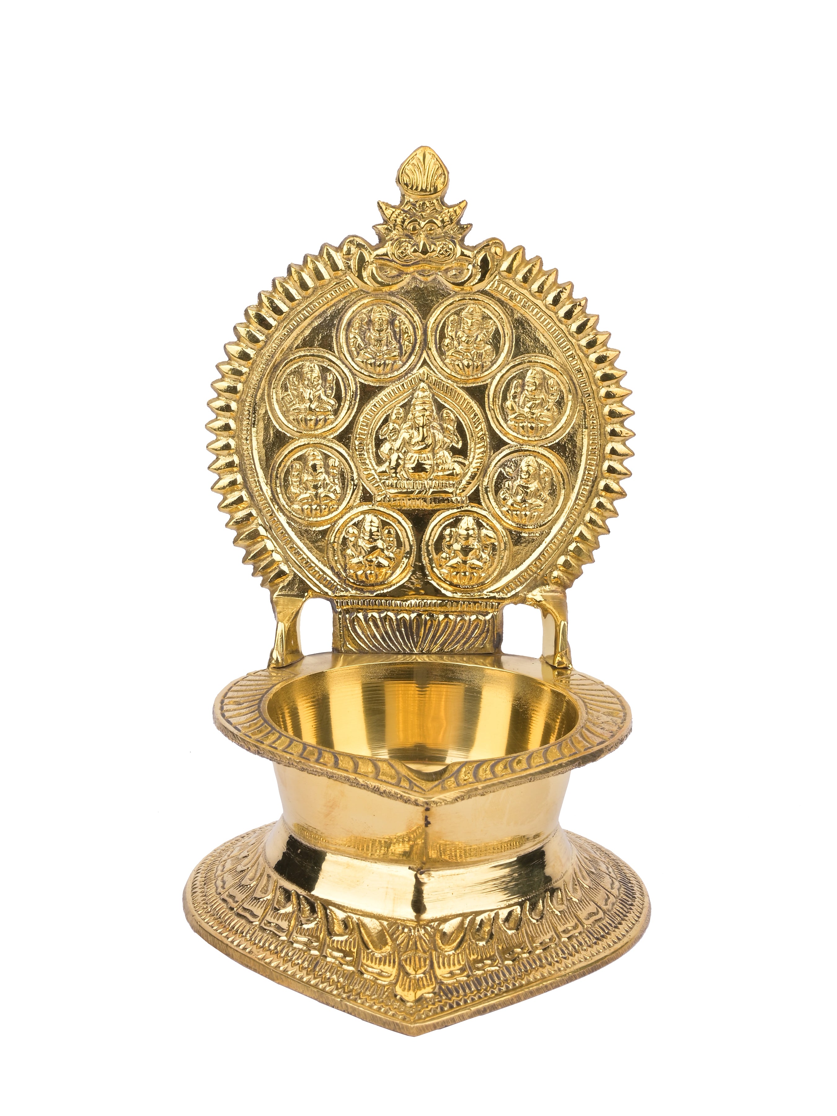Beautifully hand-carved Ashta lakshmi single petal Lamp/Diya. Ashta lakshmi Diya is a auspicious lamp used at homes, pujas, and weddings. A perfect piece for the living room and temple. Bring it home and get the divine blessings of the Lord.
