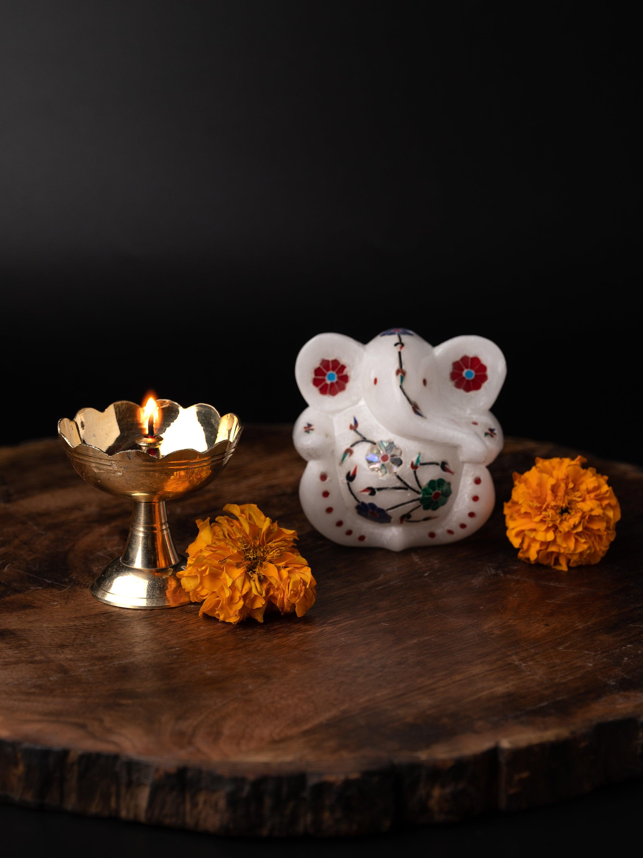 Have a look at this beautiful Kamal diya, it is made of Brass and has beautiful floral cut borders supported by a base stand. It is a perfect puja utility that can be used for puja celebrations on a daily basis. It also makes a great return gift option for housewarmings, weddings, and a lot more special occasions.