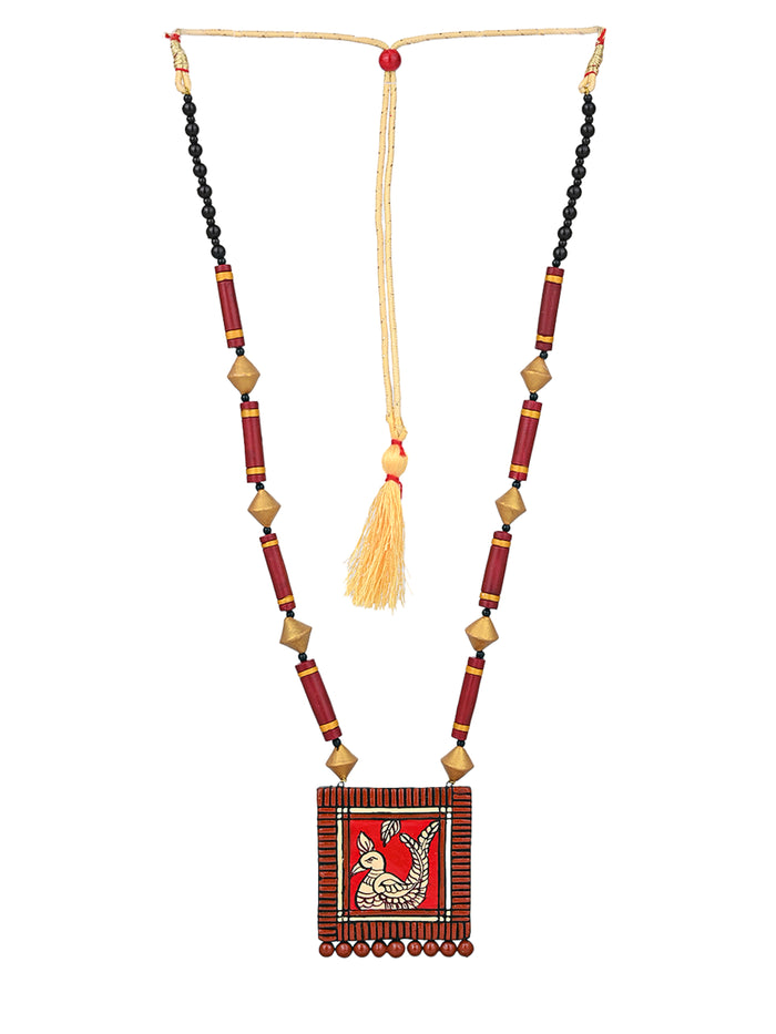 MAURYANA - Terracotta face painted necklace set with earrings available in assorted colors - adjustable length