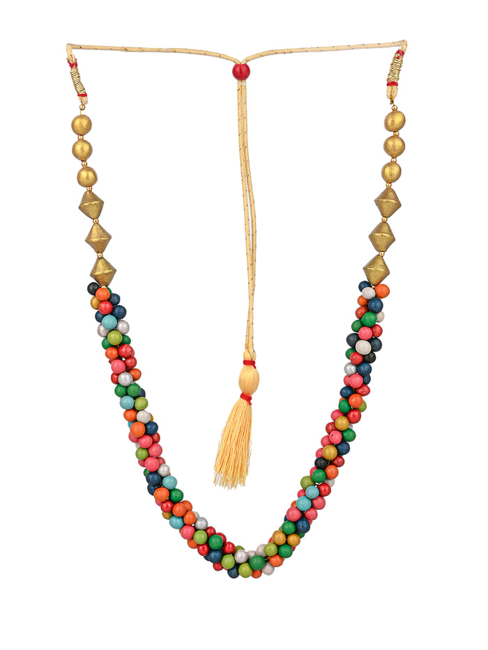MAURYANA - Terracotta colorful beaded necklace set with earrings - adjustable length