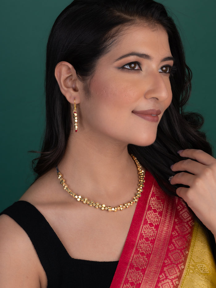 MAURYANA - Terracotta half circle gold beaded necklace set with earring - adjustable length