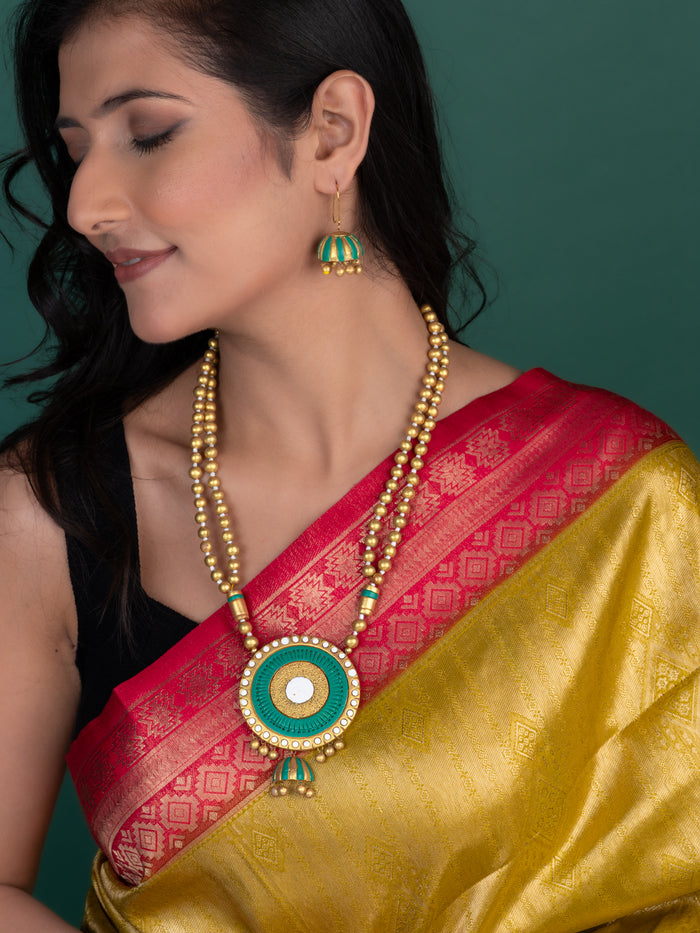 MAURYANA - Terracotta round pendant necklace with earrings in assorted colors