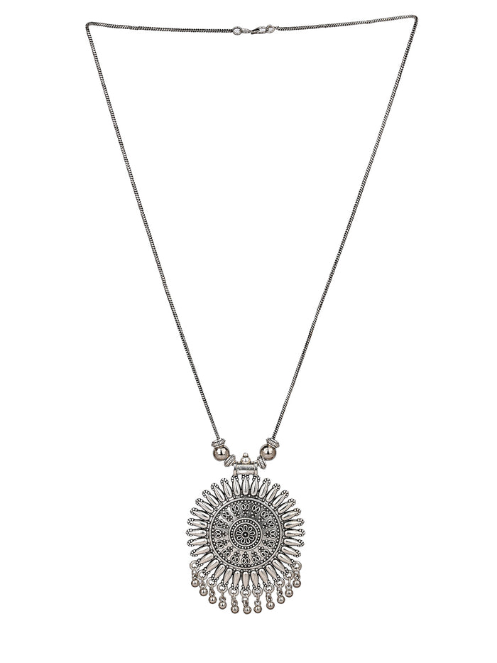 MAURYANA - Oxidised silver pendant with chain necklace - one size