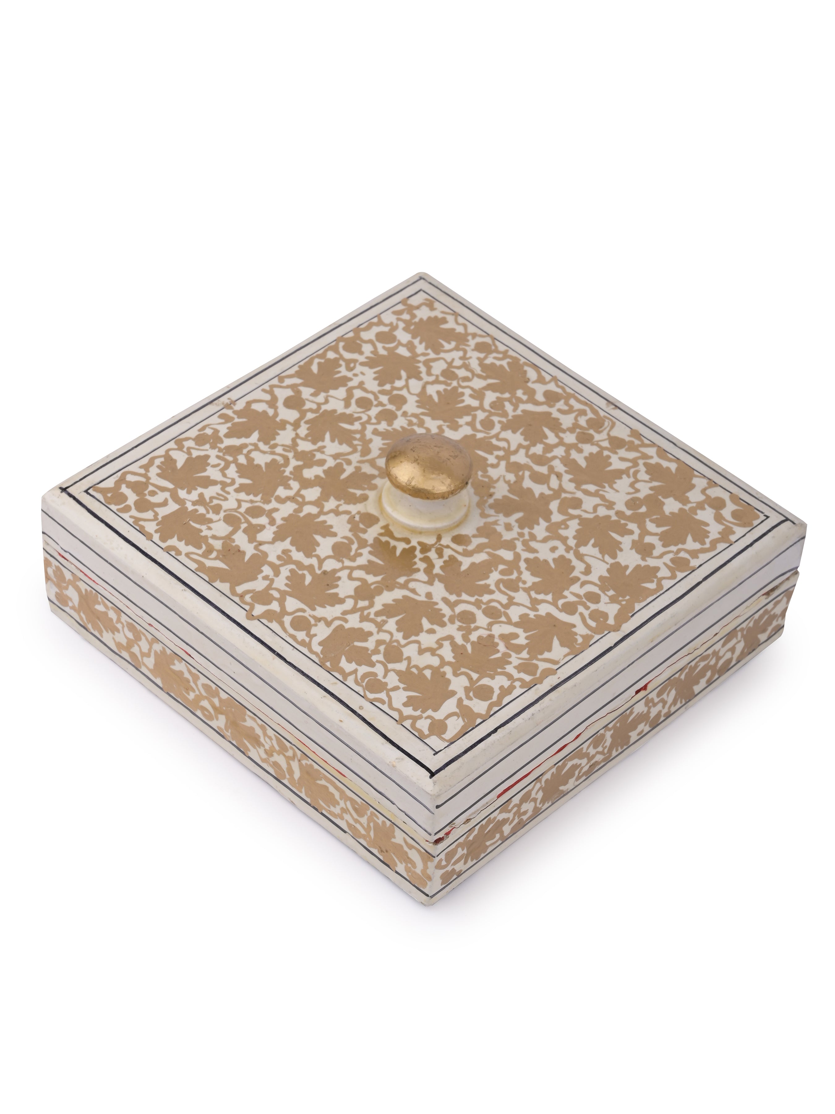 This box makes an elegant décor and jewellery organizer for your living piece, a gorgeous gift box for someone special. Traditional Kashmiri art made of paper pulp and then hand painted on top.