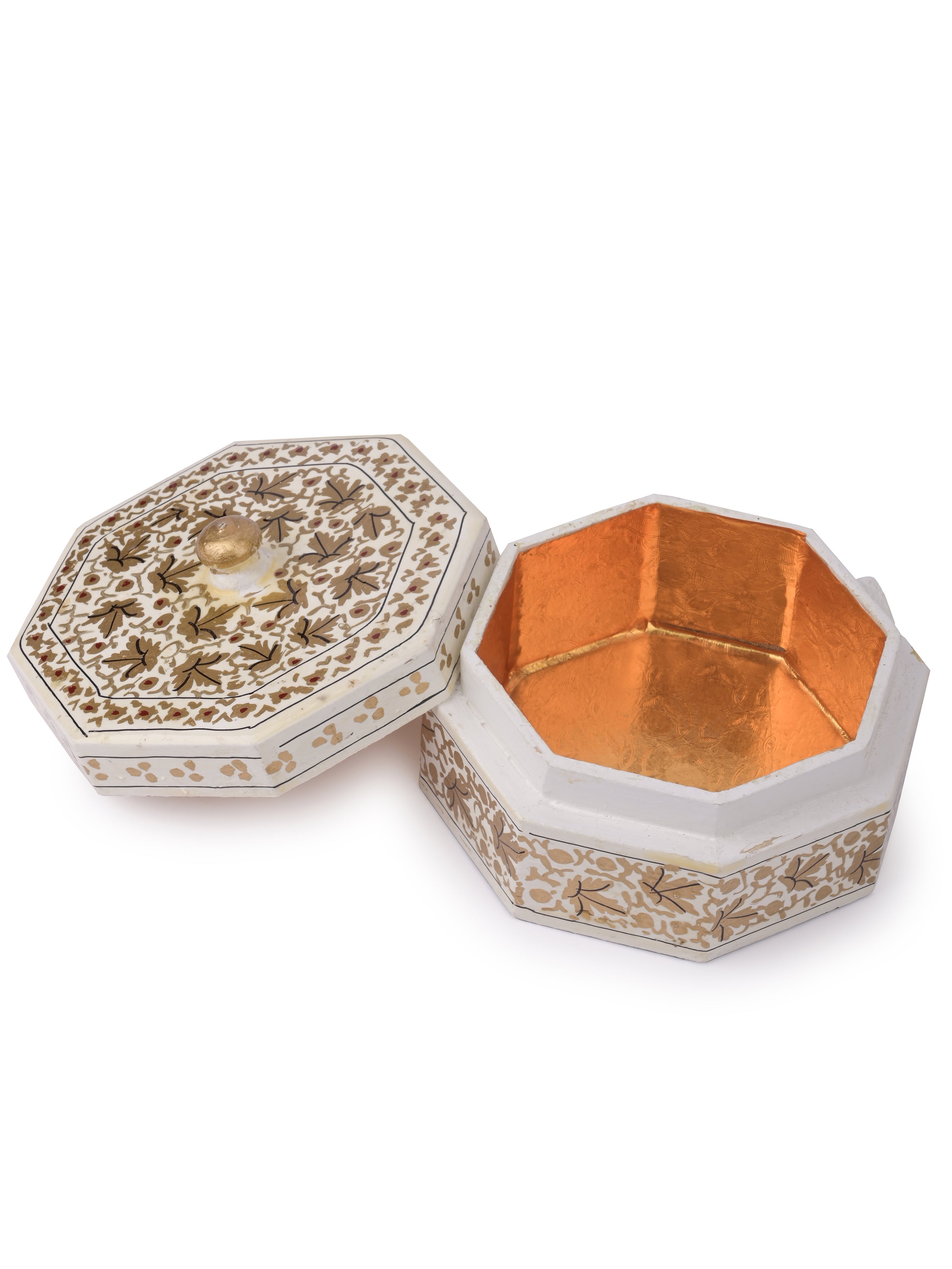 This box can be used to store items like jewelry, pens, USB cables, mobile charger, rings, bangles, etc. Made up of paper pulp and hand painted with floral embroidery by the best artisans of Kashmir.