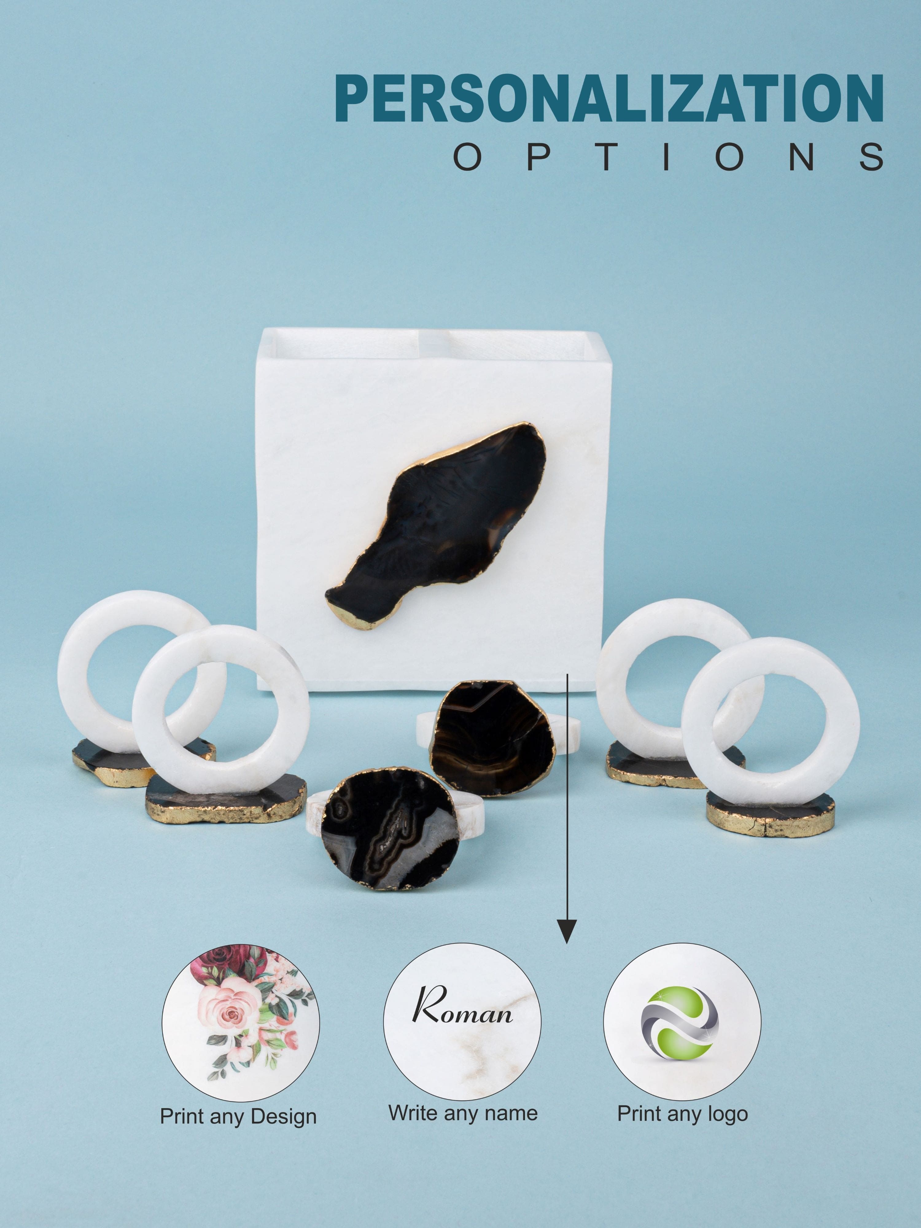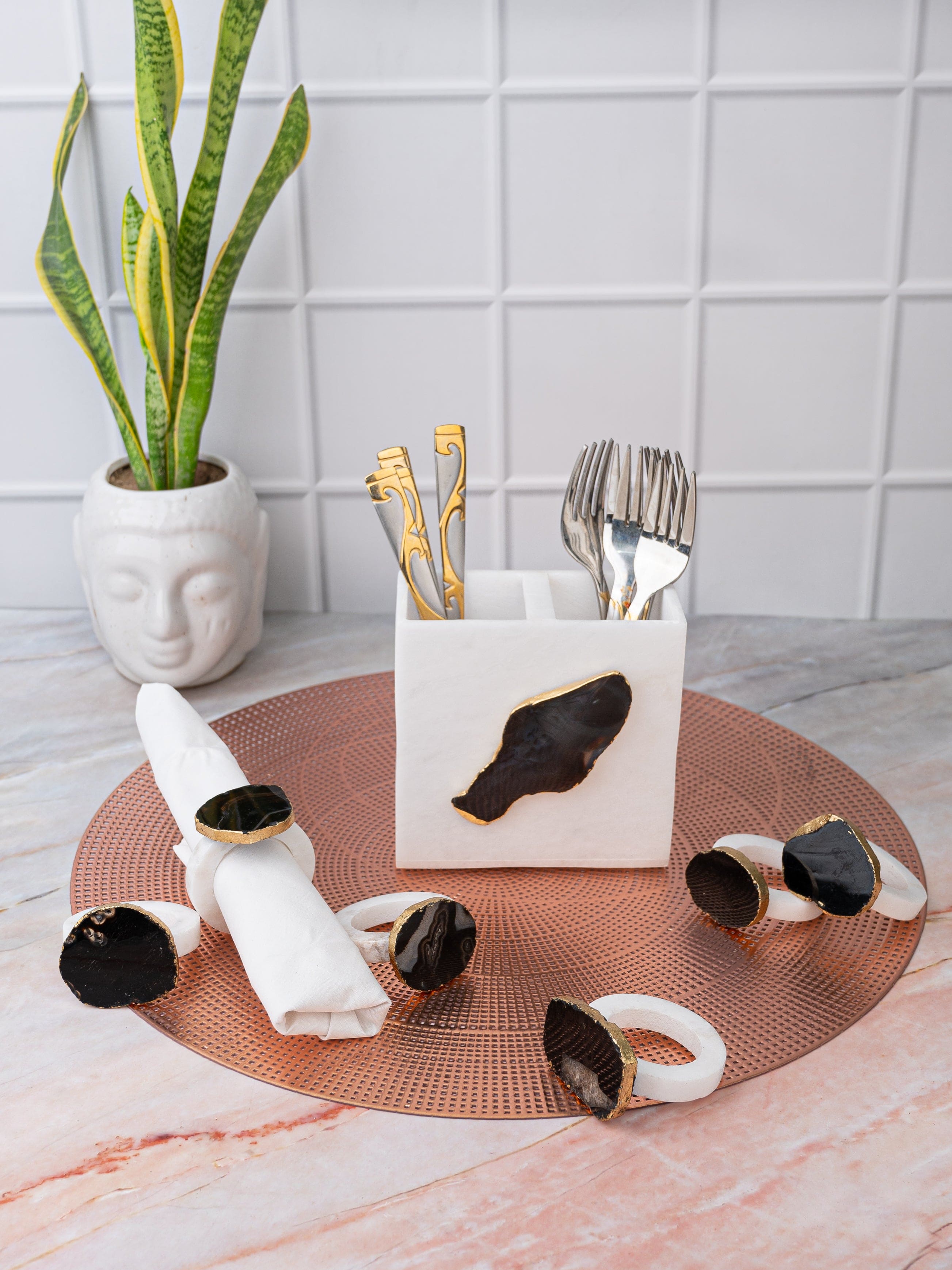 When it comes to impress your guests with a perfect and formal dinner this set of marble cutlery holder and napkin ring fits at its best. They add an elegant touch to your table settings and will elevate the class of your tableware collection. This collection is completely handcrafted with precision to give an extraordinarily shape by our artisans.