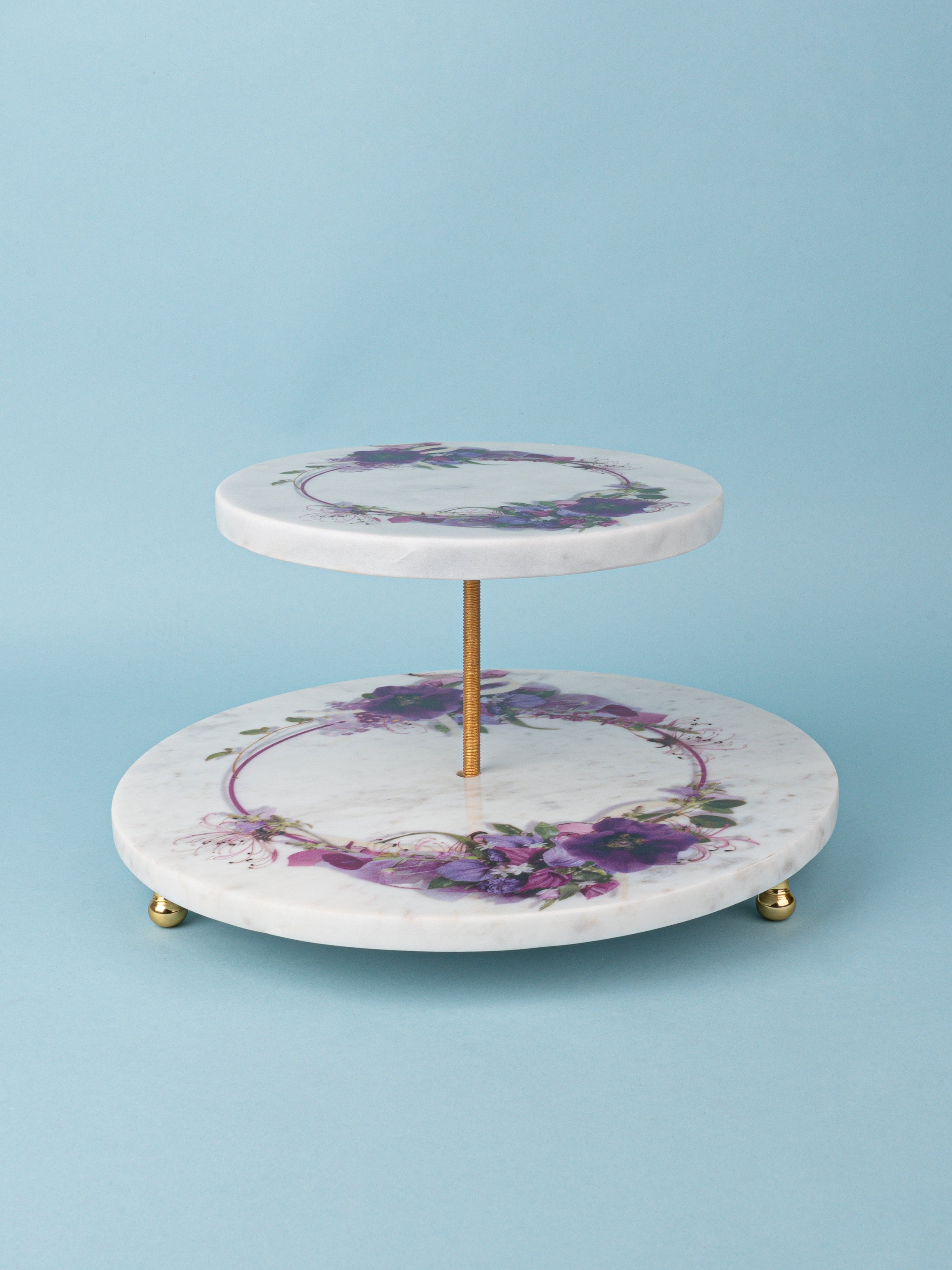 Enrich your dining experience with our marble printed dessert stand perfect for any kind of occasion. Very similar to the Victorian design, an ode to nature is a symbol of utmost grace and sophistication. Display delicious brownies, pastries, muffins or mouth-watering barfi and our traditional sweets in this unique floral shaped tableware range.