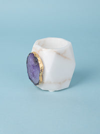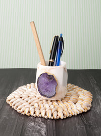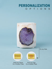 Presenting opulent combination of marble and semi precious agate stone work. This pen stand will add a touch of luxury to your desk decor. The rich marble carving contrasted with the agate stone decor will instantly elevate your working ambience.