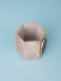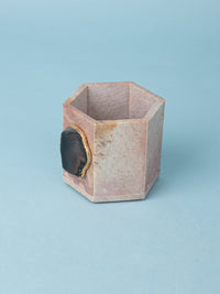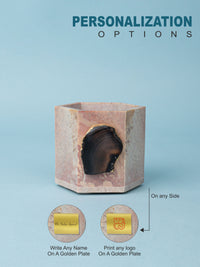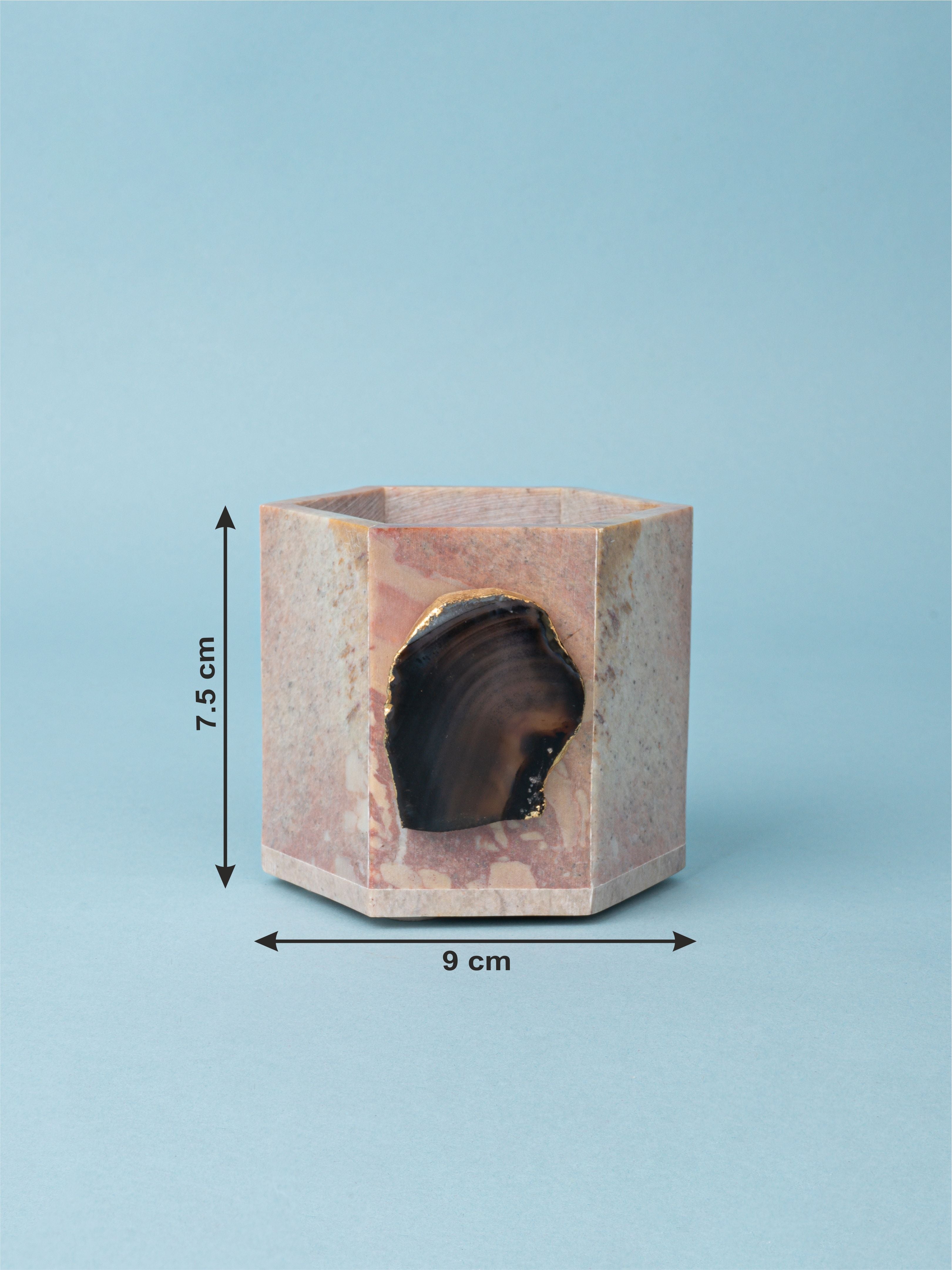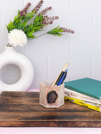 Hexagonal Stone Carved Pen / Pencil Stand Decorated with Agate Stone