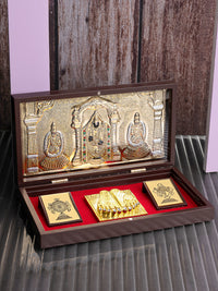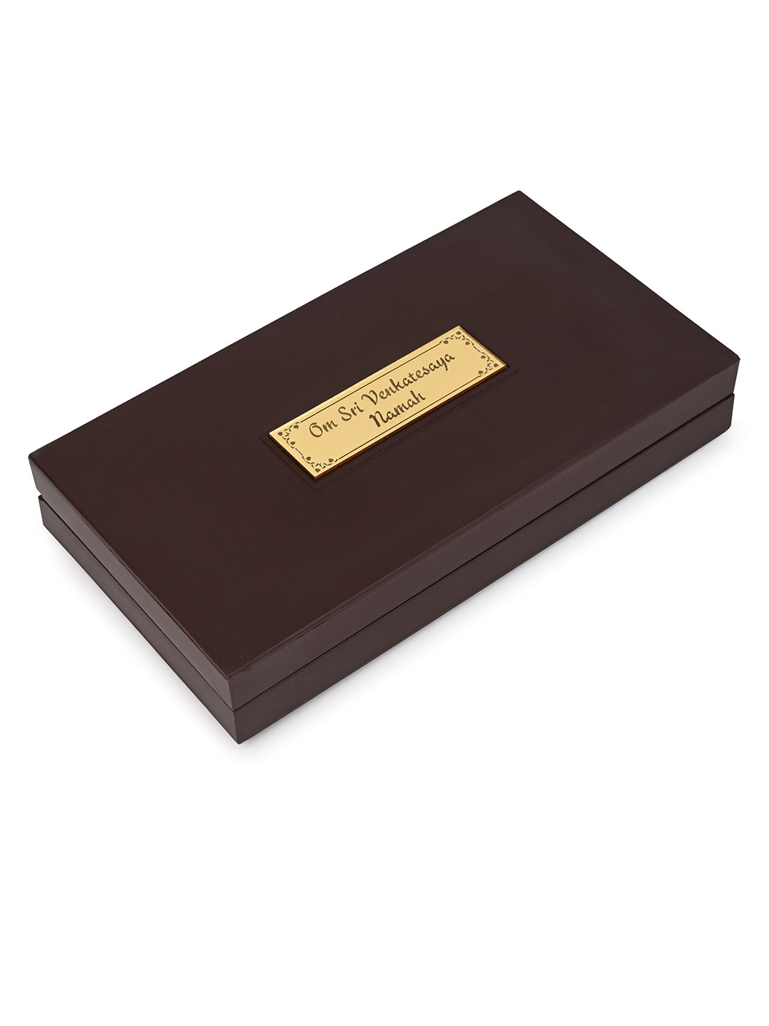 The Brass Charan Paduka Box is a beautifully crafted spiritual artifact that brings divine blessings to your home or office. Designed with meticulous attention to detail, this box features intricately engraved Charan Paduka (footprints), symbolizing the sacred feet of deities or revered saints. The compact size of the box makes it a versatile addition to your spiritual practices, whether used for daily prayers, gifting or as a decorative piece.