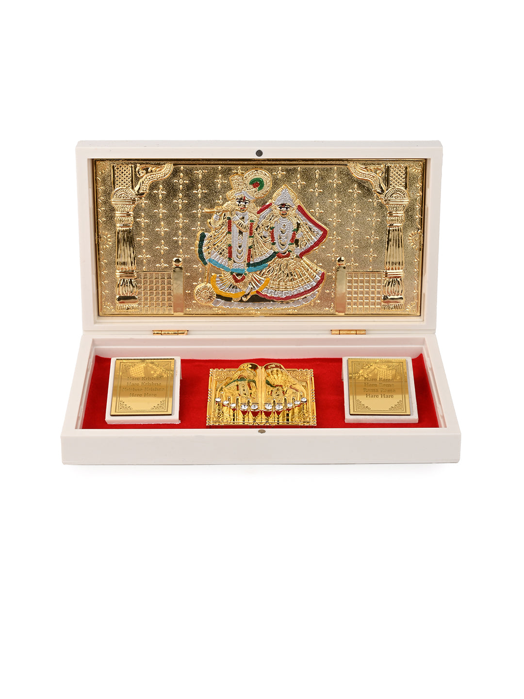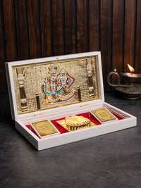 The Brass Charan Paduka Box is a beautifully crafted spiritual artifact that brings divine blessings to your home or office. Designed with meticulous attention to detail, this box features intricately engraved Charan Paduka (footprints), symbolizing the sacred feet of deities or revered saints. The compact size of the box makes it a versatile addition to your spiritual practices, whether used for daily prayers, gifting or as a decorative piece.