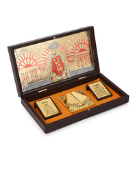 The Brass Charan Paduka Box is a beautifully crafted spiritual artifact that brings divine blessings to your home or office. Designed with meticulous attention to detail, this box features intricately engraved Charan Paduka (footprints), symbolizing the sacred feet of deities or revered saints. The compact size of the box makes it a versatile addition to your spiritual practices, whether used for daily prayers, gifting or as a decorative piece.