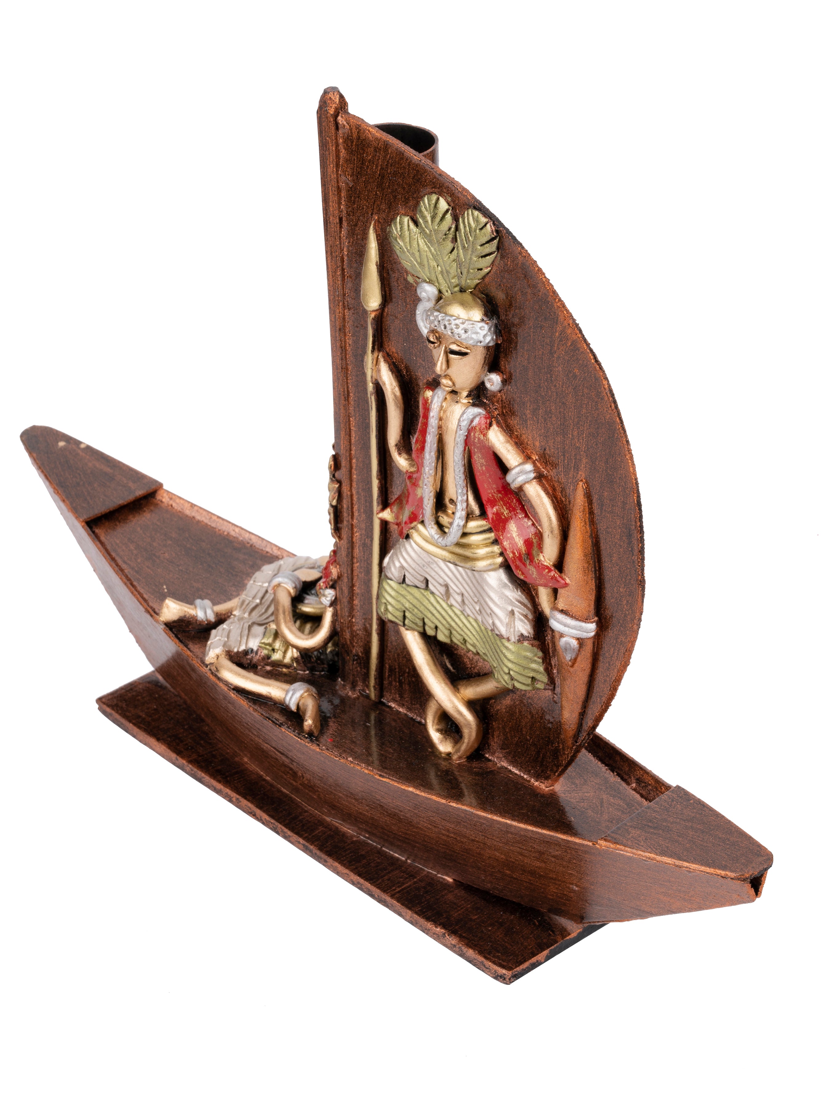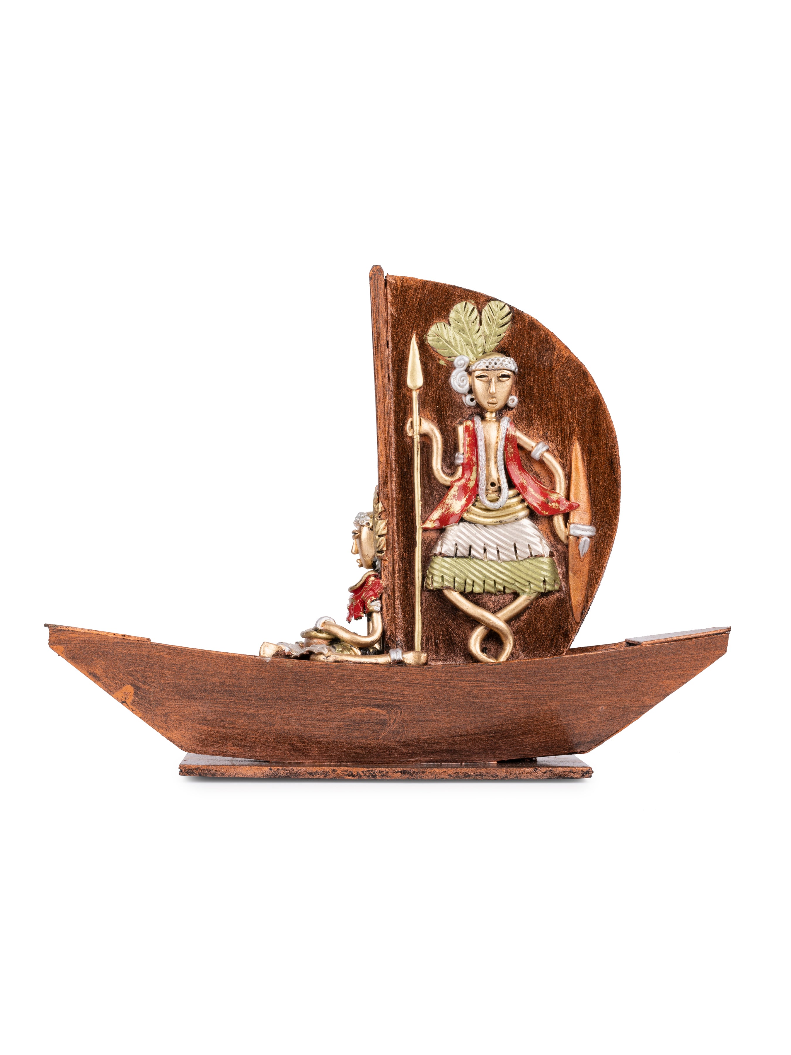 This simple sailing decoration is inspired by life in the sea. Every detail is infused with the craftsmanship of our Bengal artisans, created with love and care, the boat is from made of wood and the decoration on top is done with resin and Mseal. The statue is meant to suit any interior setup which enhances the overall look and will light up every corner of the room with its creativity. It is very pleasing to the eye, creating a romantic atmosphere, just like life at sea.