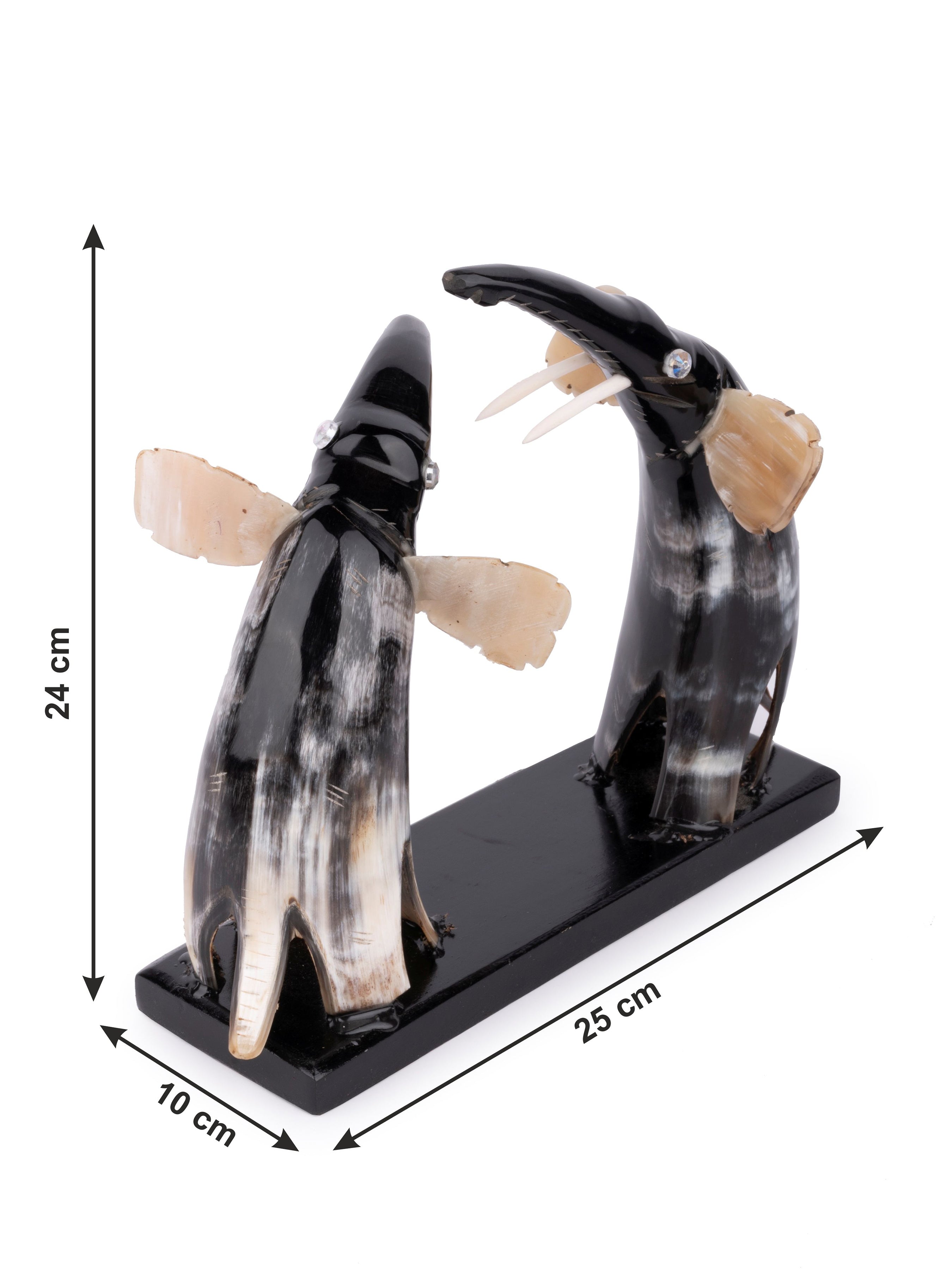 Very carefully handcrafted on 100% original buffalo horn to give that abstract look of a pair of elephants with trunk. Treat your family with this unique gift for their house warming, anniversary, birthdays, thanks giving or any other festive occasion.