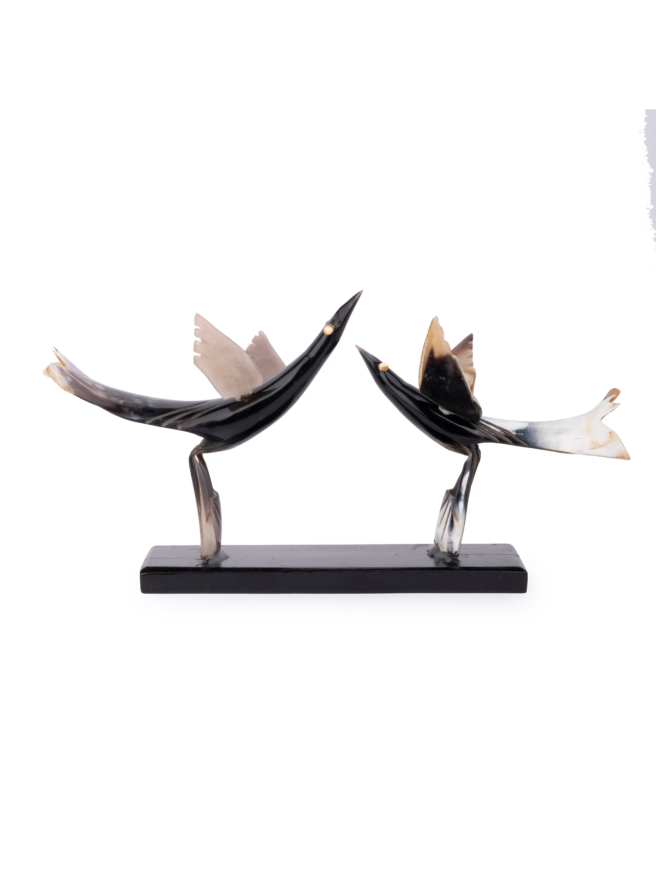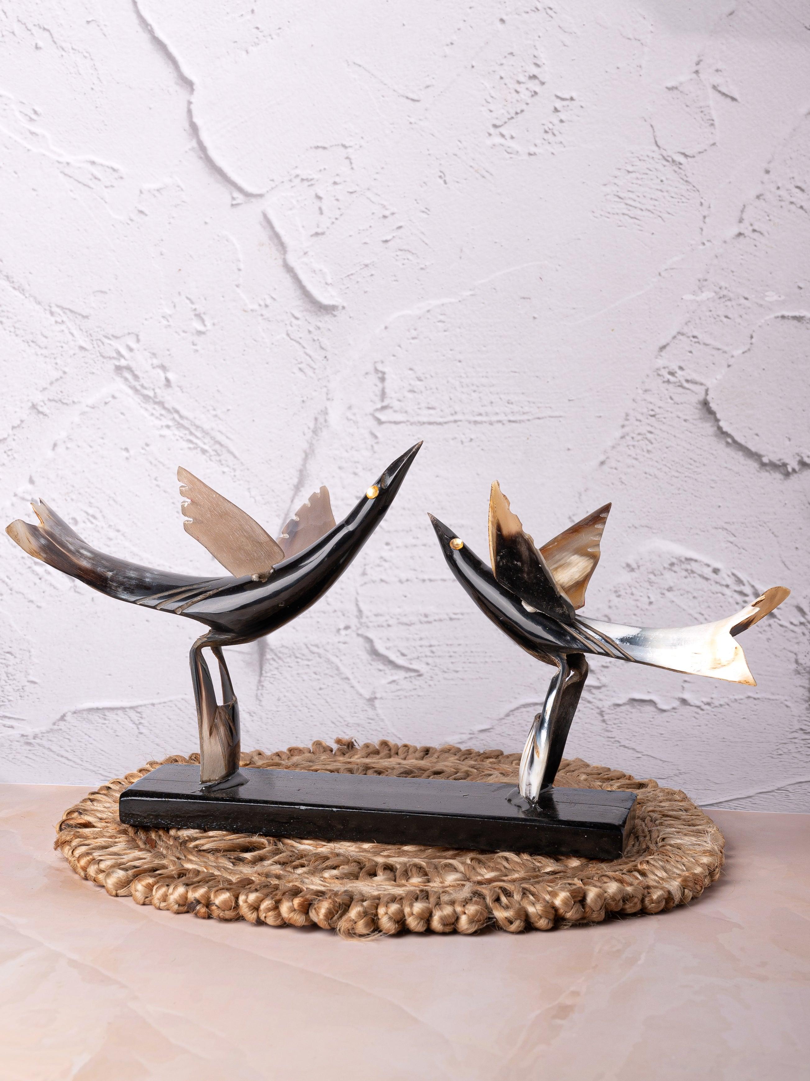Made of 2 pieces of genuine quality horns and then several small pcs stuck together with glue to give that abstract looking pair of birds. Display them on your center table, show cabinet or office table, they will grab everyone's attention.