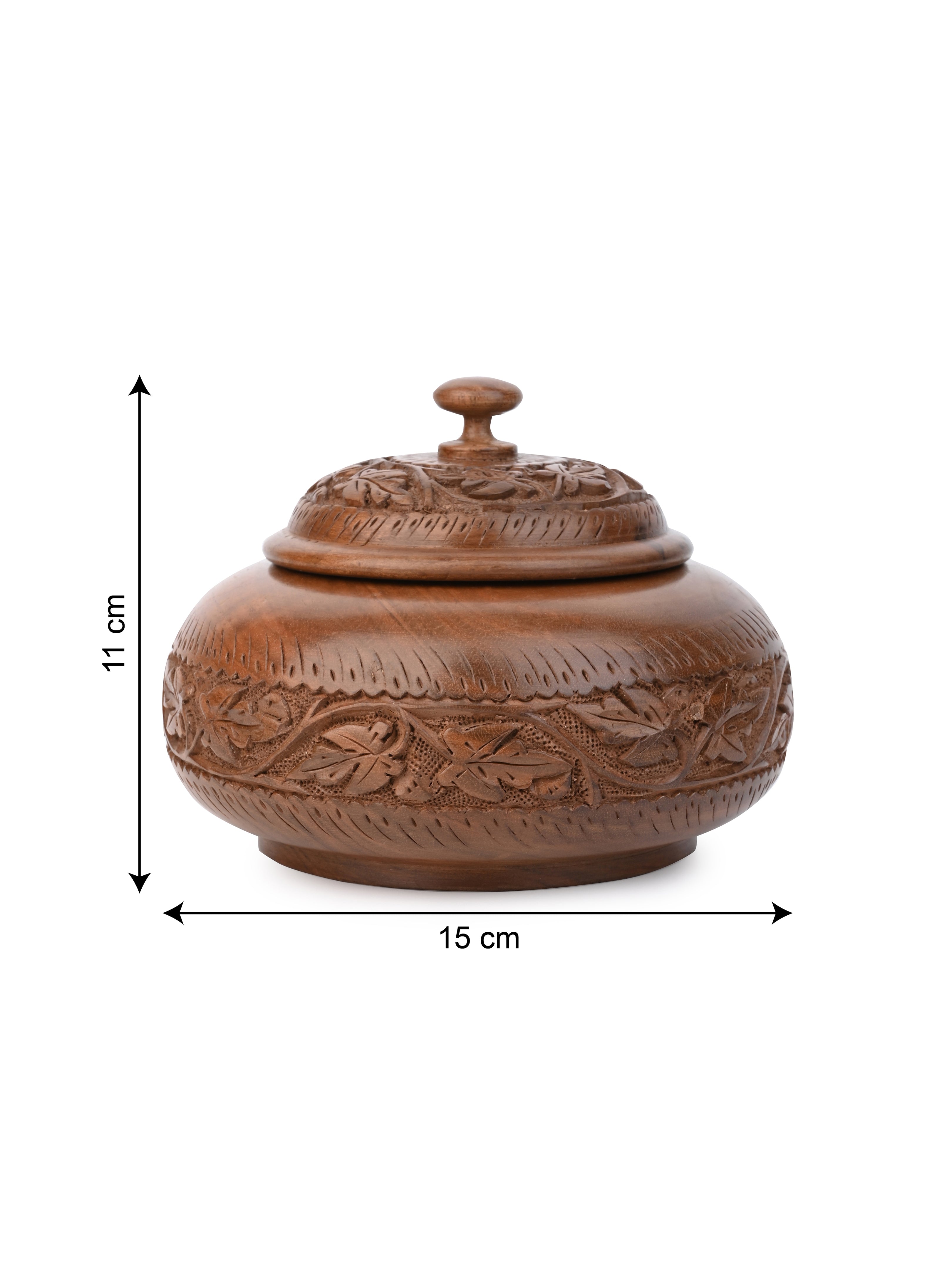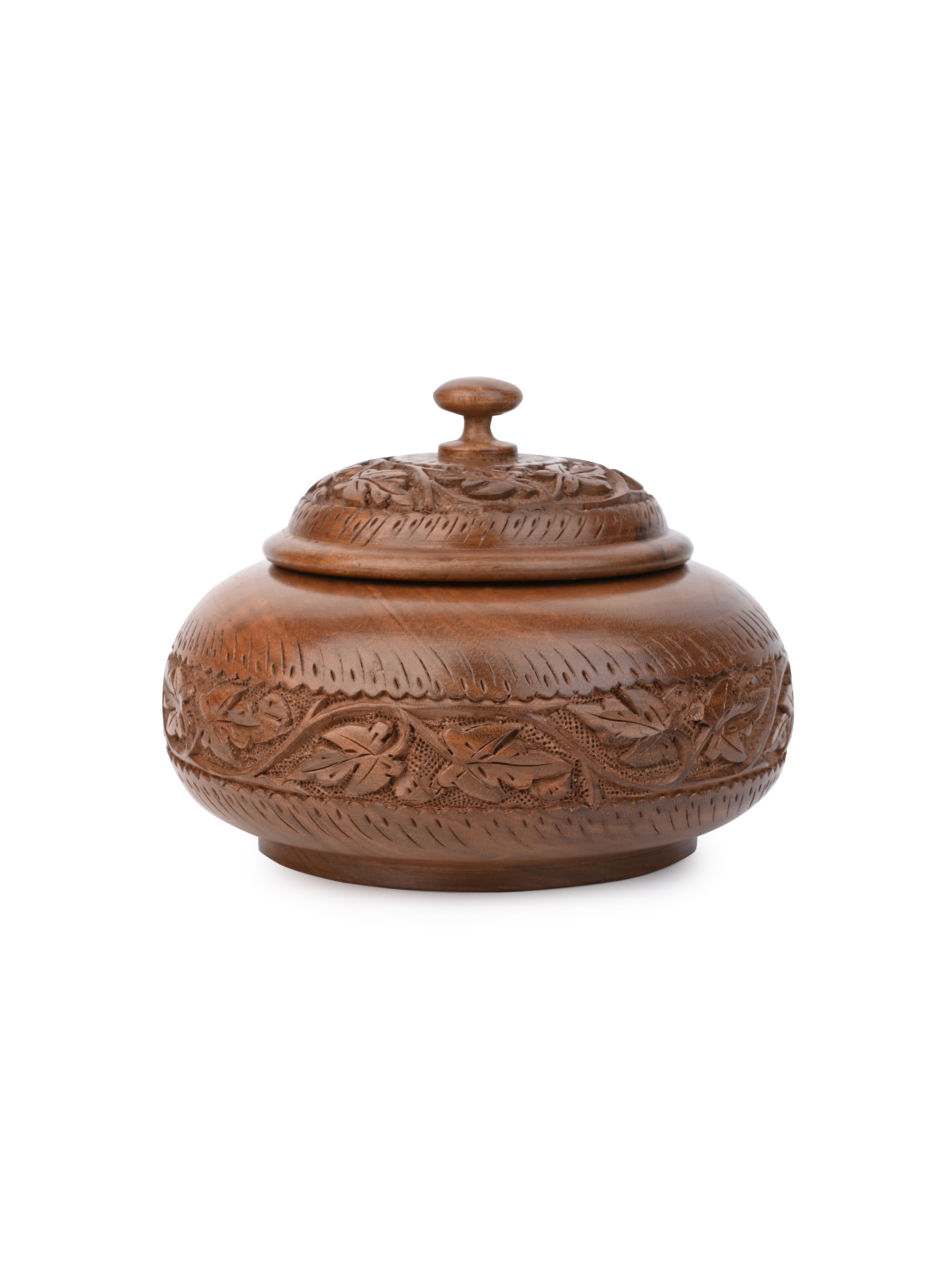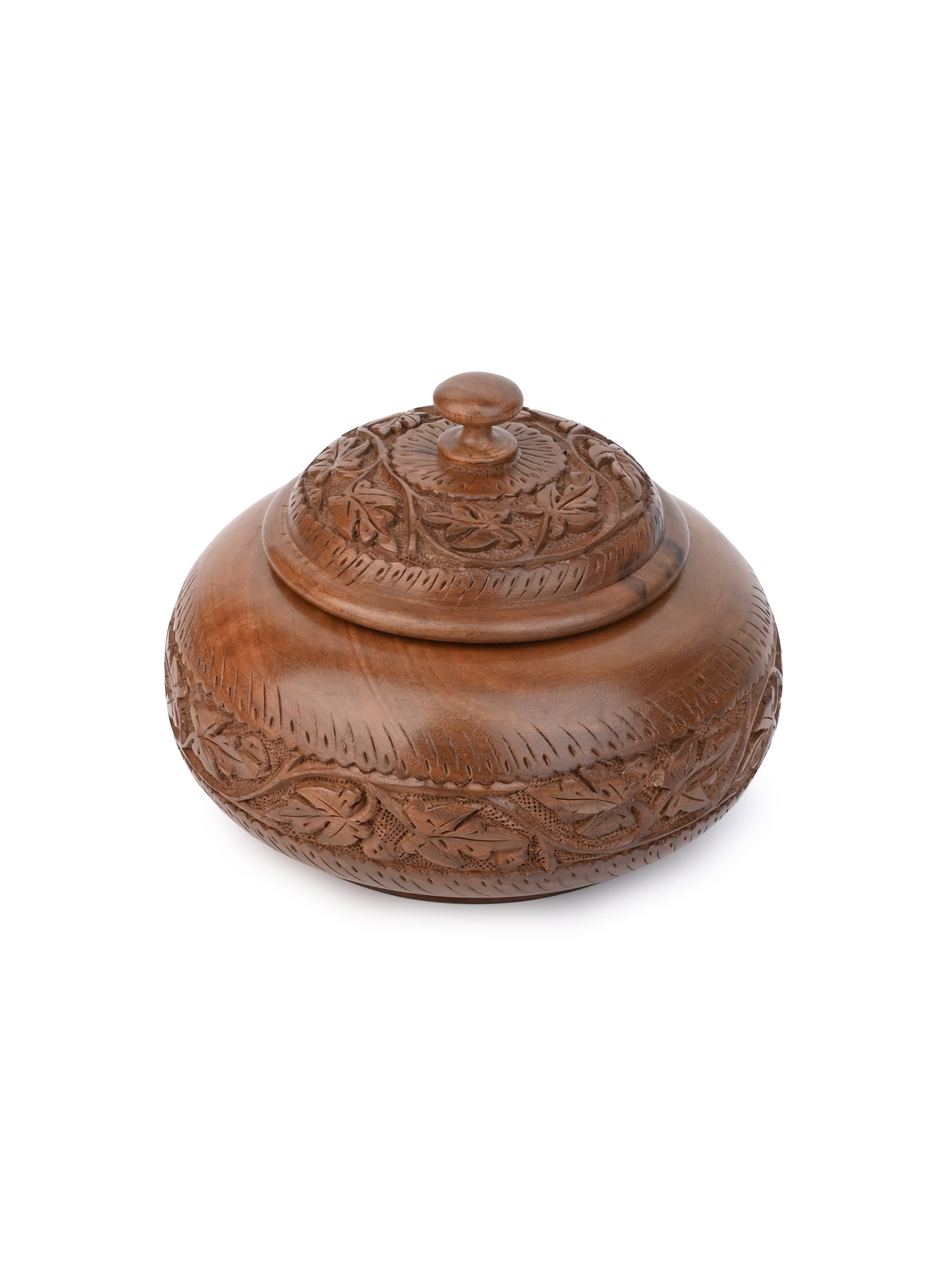 Add a little luxury to your vanity table, organize and protect your precious jewelry with our hand carved jewelry box made of natural walnut wood from Kashmir. The elegant design combines classic oriental charm with a modern minimalistic twist. Walnut wood carving is a traditional craft of Kashmiri artisans, this statement piece is a symbol of their dedication and hard work.