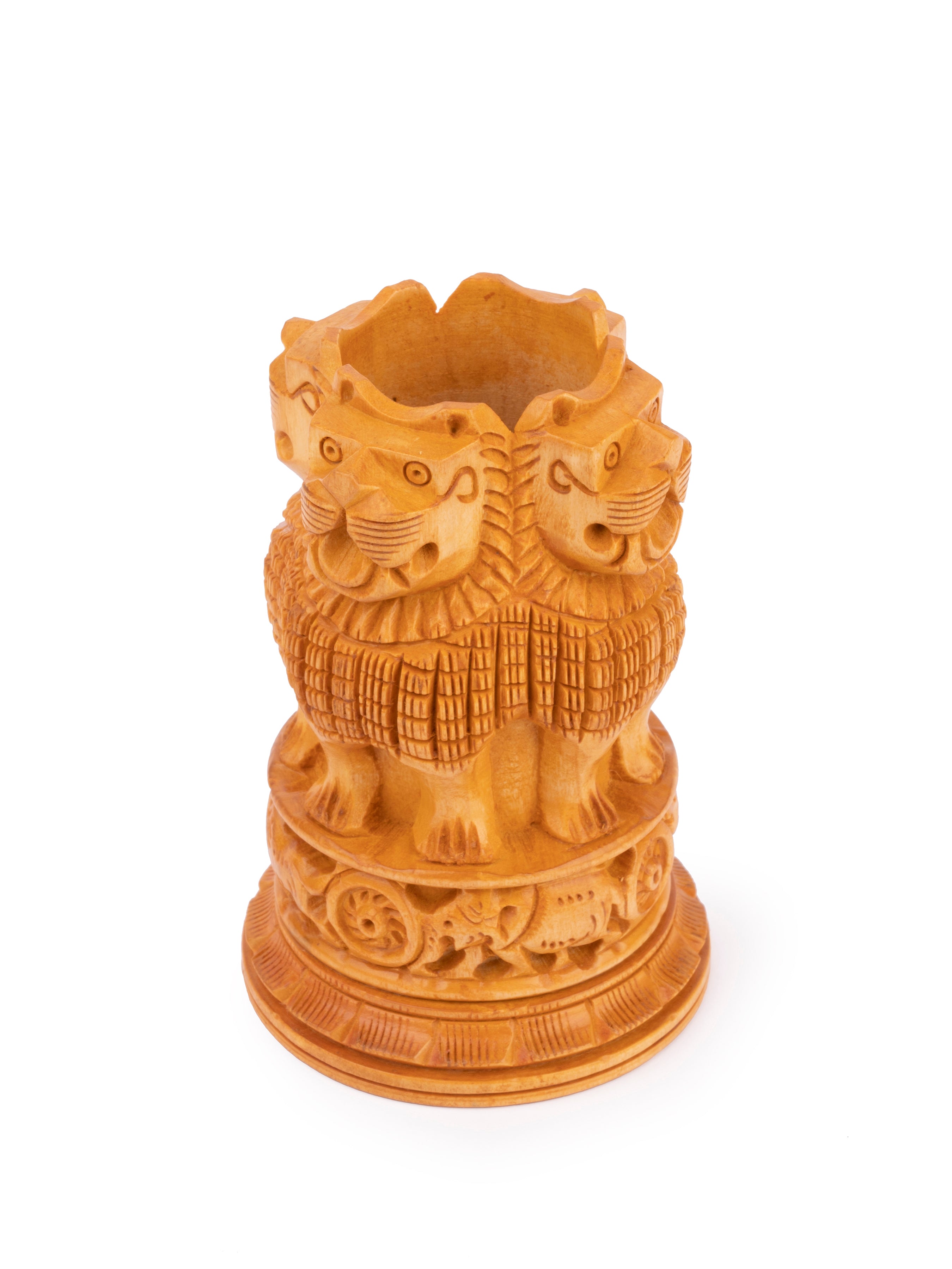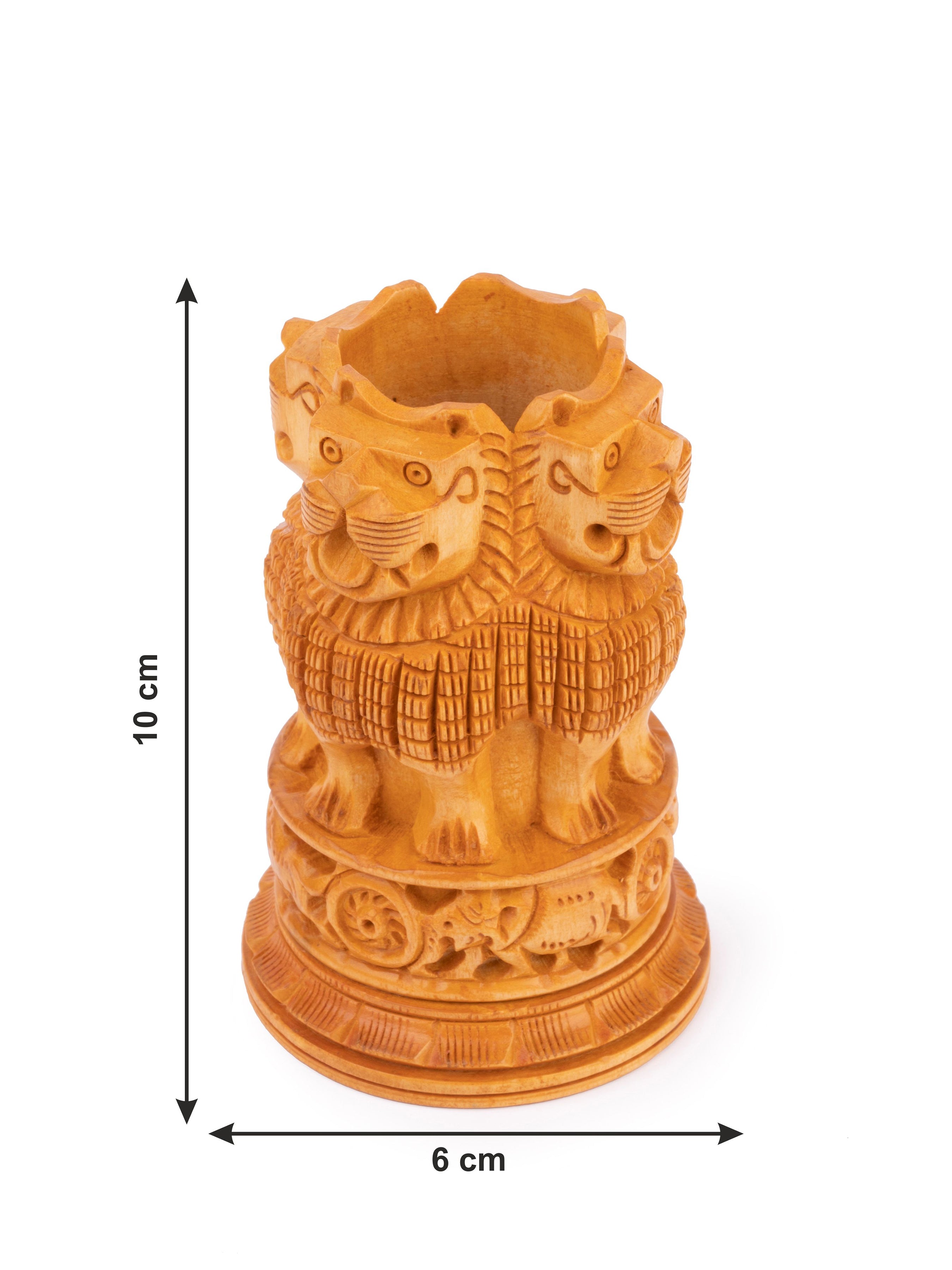 A showpiece which gives the feel of Indian Patriotism. Featuring a brown colored Asoka Pillar in cylindrical form with four lions, made out of kadam wood. Furnish your home or office desk with this pen holder and can gift to your dear ones on special occasions.