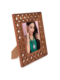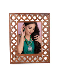Crafted from rich Sheesham wood, this premium photo frame features intricate jali carvings that reflect timeless Indian artistry. Each detail is hand-finished to perfection, making it not just a frame — but a masterpiece that celebrates your memories with elegance and heritage charm.